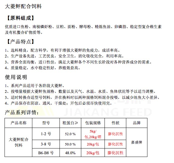 大菱鲆配合飼料